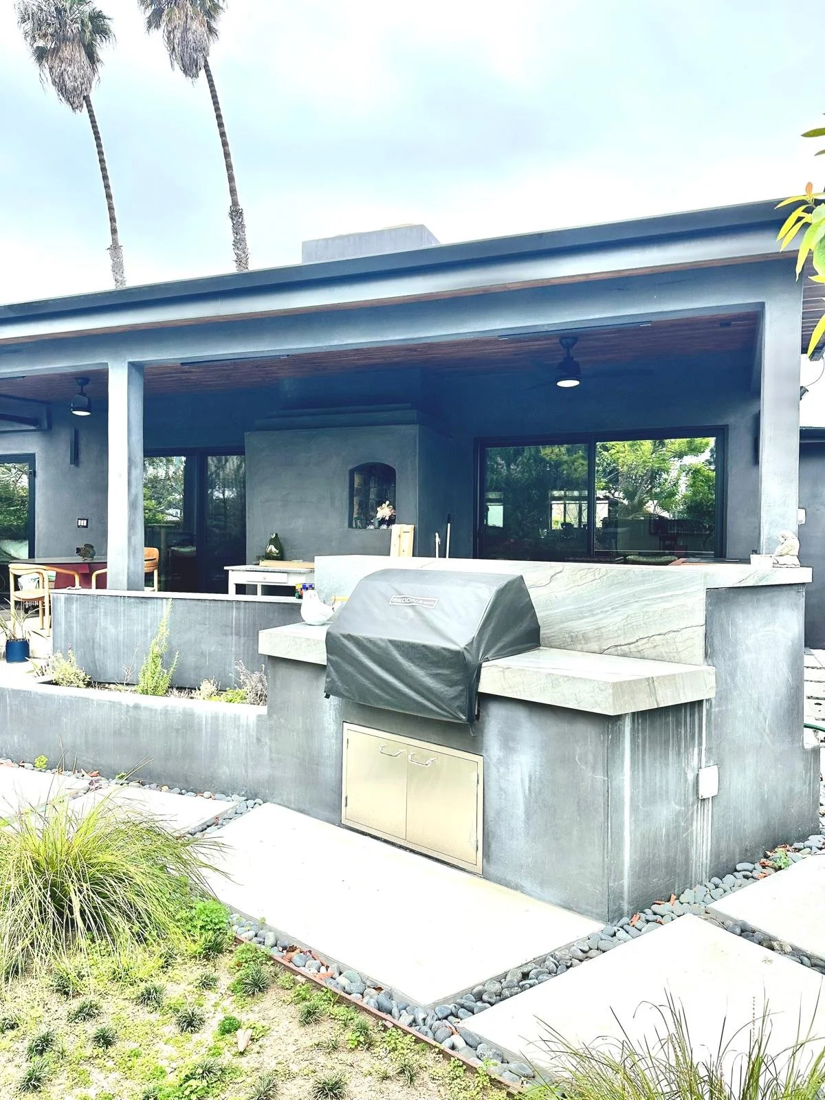 Lebby Contractors had the privilege of redesigning and remodeling this space, featuring custom built-in cabinetry and a fully custom kitchen outfitted with over $60,000 in premium appliances(WOLF). The exterior was enhanced with smooth stucco in a custom color finish, adding a refined and cohesive look to the overall design.